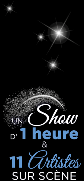 11 artistes sur scène avec des numéros spectaculaires et des effets spéciaux dans un décor féerique.
