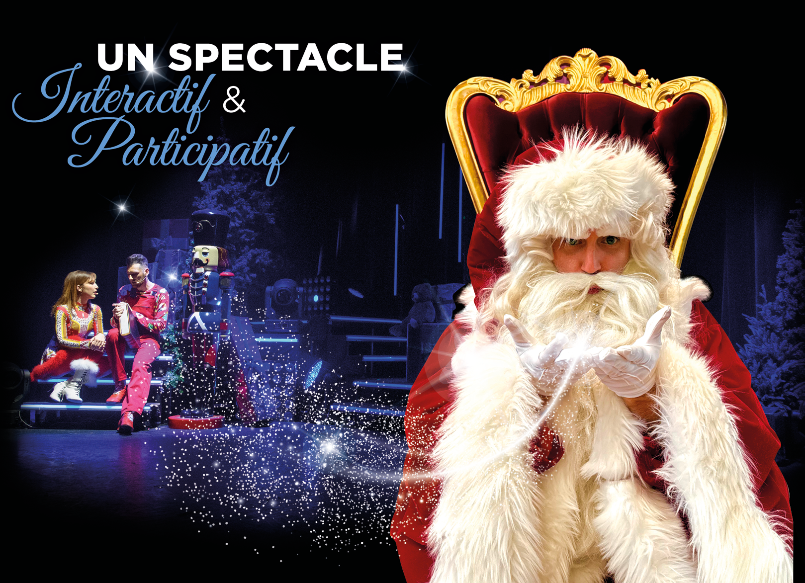 Pour prolonger la magie jusqu’à la dernière seconde, le spectacle s’achèvera par une visite exceptionnelle : le Père Noël en personne viendra à la rencontre du public sous une délicate pluie de confettis blancs. Il adressera quelques mots aux enfants comme aux plus grands et leur souhaitera de merveilleuses fêtes de Noël, dans un moment suspendu, chaleureux et inoubliable. Une invitation à rêver, à partager et à célébrer ensemble la plus belle période de l’année.