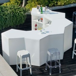 Le bar "ICEBERG", dont la forme constitue un double pentagone, est modulable à l'infini en accollant plusieurs bars les uns à côté des autres pour composer des formes diverses de dimensions...